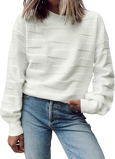 Women's Sweater Fall Winter Long Sleeve Casual Tops Ribbed Hem Knitwear Lantern Pullover Sweater
